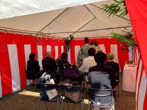5月17日に吉野川市鴨島町で地鎮祭を行ないました!当日は、朝から台風並みの風雨に見舞われましたが、地鎮祭の時間には、雨も止み、無事祭典を執り行うことができました。いよいよこれから着工です!